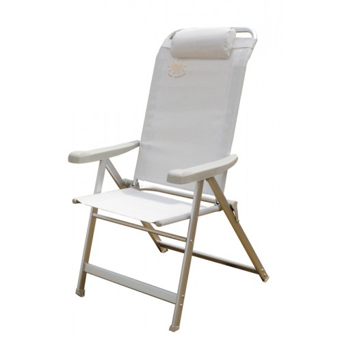 Ύφασμα: Textilene. 2×1 Σωλήνας: Αλουμινίου 40x20x0,9mm. Πλαίσιο καθίσματος: ø22×0,9mm με ενίσχυση μεταλλικού σωλήνα εσωτερικά. Με ανάκληση 5 θέσεων. Διαστάσεις: 63×70,5x115cm. Χρώματα: Μπλε, Πορτοκαλί, Κίτρινο, Εκρού, Ριγέ Μπλε – Άσπρο.